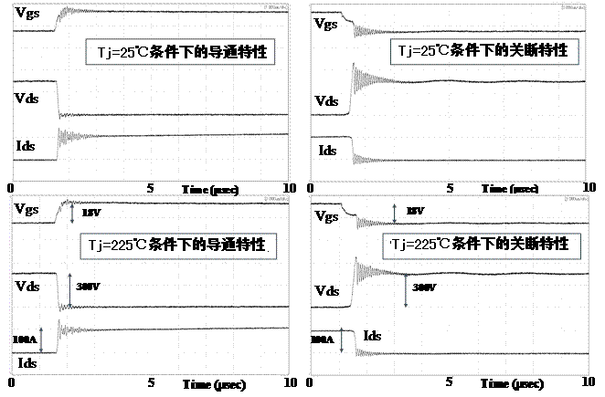 (測量條件: Ids=100A、Vds=300V、負載:L=200uH、Rg=3.2Ω、Rgs=15kΩ)