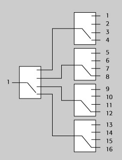 層疊開(kāi)關(guān)架構(gòu)是多位置開(kāi)關(guān)的一種替代形式。它采用多個(gè)繼電器將一個(gè)輸入連接到多個(gè)輸出。路徑長(zhǎng)度(同時(shí)決定了相位延遲)是由信號(hào)經(jīng)過(guò)的繼電器的數(shù)量決定的。