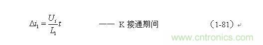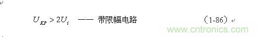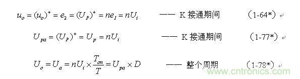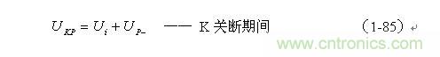 根據(jù)圖1-17,加到開關(guān)器件(控制開關(guān))兩端的峰值電壓UKP正好等于輸入電壓Ui與反電動(dòng)勢(shì)峰值Up-之和,即: