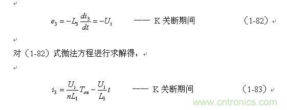 (1-83)式中右邊的第一項(xiàng)就是流過變壓器初級(jí)線圈N1繞組中的最大勵(lì)磁電流被折算到次級(jí)線圈N3繞組中的電流(最大值),第二項(xiàng)是i3中隨著時(shí)間變化的分量。其中n為變壓器次級(jí)線圈N3與初級(jí)線圈N1的變壓比,或匝數(shù)比。