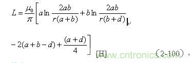 【說明】上式是用來計(jì)算變壓器線圈電感的計(jì)算公式。由于變壓器鐵芯的磁回路基本是封閉的,變壓器鐵芯的平均導(dǎo)磁率相對來說比較大。鐵芯的導(dǎo)磁率一般在產(chǎn)品技術(shù)手冊中都會(huì)給出,但由于大多數(shù)開關(guān)變壓器的鐵芯都留有氣隙,留有氣隙的磁回路會(huì)出現(xiàn)磁場強(qiáng)度以及磁感應(yīng)強(qiáng)度分布不均勻,因此,(2-103)式中的導(dǎo)磁率只能使用平均導(dǎo)磁率,技術(shù)手冊中的數(shù)據(jù)不能直接使用。