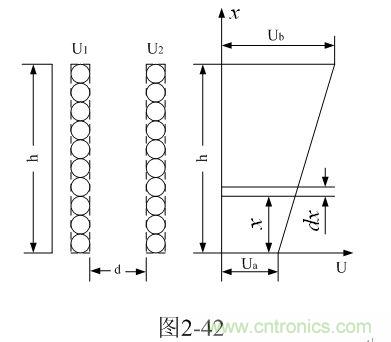 圖2-42是分析計(jì)算開關(guān)變壓器線圈之間分布電容的原理圖。