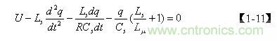 圖4中,當(dāng)電源開關(guān)管Q1導(dǎo)通時(shí),設(shè)輸入電壓為U,流過(guò)Ls的電流為 i,流過(guò)Cs的電流為i1 ,流過(guò)Lu 的電流為i2 ,流過(guò)R的電流為i3 ,Cs存儲(chǔ)的電荷為q,如果忽略Lds的作用,則列出回路方程為: