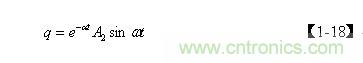 【1-21】式是當(dāng)電源開關(guān)管Q1導(dǎo)通時(shí),分布電容Cs兩端電壓隨時(shí)間變化的表達(dá)式,它由兩部分電壓組成,一部分是電容Cs兩端電壓的半波平均值Uc ,由【1-19】式表示;另一部分是正弦阻尼振蕩,其最大振幅等于 Uc, e-at是一個(gè)小于1的衰減系數(shù)。