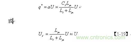 上式中的電壓 Uc實(shí)際上就是電容Cs兩端電壓的半波平均值Upa。它等于輸入電壓U在漏感Ls 與勵(lì)磁電感Lu 組成的串聯(lián)電路中勵(lì)磁電感 Lu兩端的分壓的半波平均值。由于漏感 Ls與勵(lì)磁電感Lu 相比非常小,因此,可以把 Uc看成與輸入電壓U基本相等。