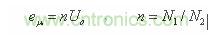 值得注意的是,當(dāng)電源開關(guān)管Q1關(guān)斷時(shí),由于變壓器次級(jí)線圈整流濾波電路D2和C2的接入,開關(guān)變壓器初、次級(jí)線圈的等效分布電容Cs相對(duì)于濾波電容C2來(lái)說(shuō),其作用將變得微不足道;此時(shí),由于輸出電壓Uo通過(guò)變壓器初、次級(jí)線圈的耦合和反射作用,使得變壓器初級(jí)線圈產(chǎn)生的反電動(dòng)勢(shì)電壓eu 完全被鉗制在一個(gè)與次級(jí)輸出電壓Uo成正比的數(shù)值上,即: