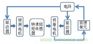 伺服電機(jī)可以進(jìn)行電機(jī)對(duì)拖,公共直流母線采用單獨(dú)的整流/回饋裝置,為系統(tǒng)提供電能,調(diào)速用逆變器直接掛接在直流母線上,當(dāng)系統(tǒng)工作在電動(dòng)狀態(tài)時(shí),逆變器從母線上獲取電能;當(dāng)負(fù)載被被測(cè)電機(jī)反向拖動(dòng)的時(shí)候,伺服電機(jī)將會(huì)變成發(fā)電機(jī),能量通過(guò)母線及回饋裝置直接回饋給電網(wǎng),以達(dá)到節(jié)能、提高設(shè)備運(yùn)行可靠性等目的。