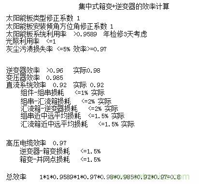 以上公式計(jì)算可參考中國(guó)質(zhì)量認(rèn)證中心技術(shù)規(guī)范《并網(wǎng)光伏電站性能監(jiān)測(cè)與質(zhì)量評(píng)估技術(shù)規(guī)范》(申請(qǐng)備案稿)和國(guó)標(biāo)規(guī)范《GB50797-2012光伏發(fā)電站設(shè)計(jì)規(guī)范》