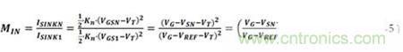 那么該偏置網(wǎng)絡(luò)第N個(gè)柱的MOSFET源電壓是什么,VSN?考慮到工作在飽和區(qū)的NMOS漏極電流等式是: