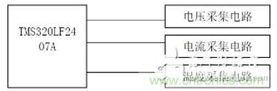 系統(tǒng)的硬件設計主要包括電壓采集電路、電流采集電路和溫度采集電路設計。采集電路以TMS320LF2407A 為CPU。TMS320LF2407A 是TI 公司專為實時控制而設計的高性能16 位定點DSP 器件,指令周期為33ns,其內(nèi)部集成了前端采樣A/D 轉(zhuǎn)換器和后端PWM 輸出硬件,在滿足系統(tǒng)實時性要求的同時可簡化硬件電路設計。