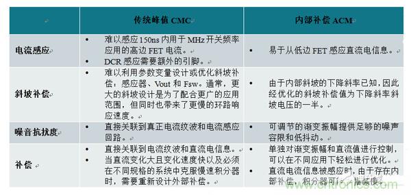表1.傳統(tǒng)峰值電流模式和內(nèi)部補(bǔ)償式ACM的比較