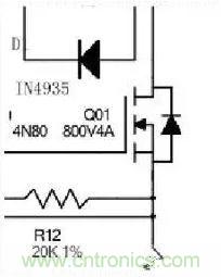 2、若反饋回路失效,輸出末端加穩(wěn)壓二極管,當(dāng)輸出遠(yuǎn)高出設(shè)定電壓,穩(wěn)壓二極管反向擊穿,使輸出正負(fù)極形成短路,使初級啟動短路保護(hù)或熔斷保險保護(hù)。