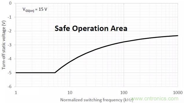 通過(guò)控制門(mén)極負(fù)壓Vgs(off),Vth漂移可以被限制在一個(gè)可接受的水平內(nèi)。不論什么情況下,關(guān)斷電壓的上限都是0V,同時(shí),關(guān)斷電壓的下限需要根據(jù)開(kāi)通電壓、開(kāi)關(guān)頻率、以及操作時(shí)間來(lái)選擇一個(gè)合適的值,使Rds(on)的增加限制在一定范圍之內(nèi)。