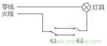 3、雙控開(kāi)關(guān)接線(xiàn)方式錯(cuò)誤