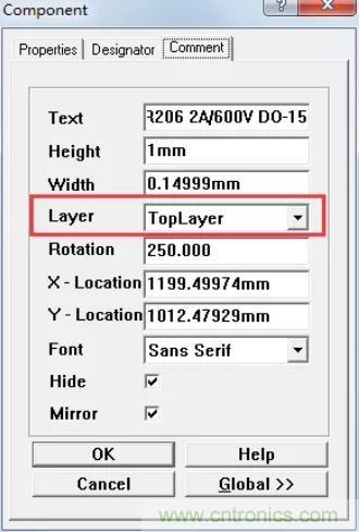 D1這個(gè)元件有個(gè)文字描述的屬性放在了頂層銅箔,如圖