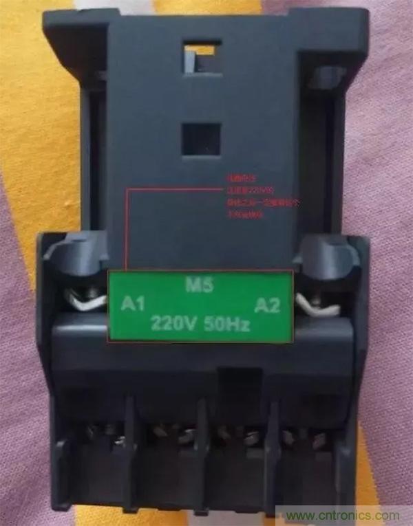 每一件接觸器在線圈接線端子地方都會(huì)有這樣的標(biāo)識(shí),還請(qǐng)各位一定要注意,接錯(cuò)了這個(gè)線圈就廢了。。