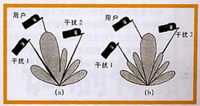 圖3自適應陣列智能天線(a)與束轉(zhuǎn)換智能天線(b)的比較