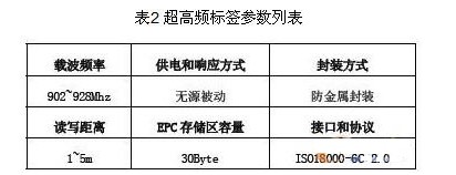 應(yīng)用方案中共涉及到高頻(13.56MHz)超高頻(915MHz)兩種不同類型的RFID標簽,所選擇的RFID標簽規(guī)格如表1、表2 所示。
