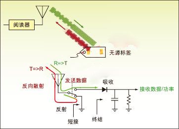 圖1:無源標簽對射頻 RF能量進行整流并調(diào)制信號,然后反向散射反射給閱讀器。