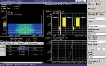 政府規(guī)定要求控制發(fā)射信號的功率、頻率、帶寬。這些規(guī)定防止有害干擾并保證每個發(fā)射者都是頻帶內(nèi)其他用戶的友好鄰居。對于許多頻譜分析儀特別是通常用于脈沖信號能量測量的掃頻頻譜分析儀,進行此類測量是具有挑戰(zhàn)性的。RTSA 能夠分析一個完整的分組發(fā)射過程的能量特點,也能直接測量跳頻信號的載波頻率,而無需將信號置于一個跨度的中心。按一下按鍵,分析儀就能識別一個瞬時 RFID 信號的調(diào)制方式并能夠?qū)β?、頻率和帶寬進行監(jiān)管測量,使預一致性(pre-compliance)測試過程變得非常靈活和方便 [參閱圖2]。預一致性測試有助于確保產(chǎn)品一次通過一致性測試,而無需重新設計和重新測試。