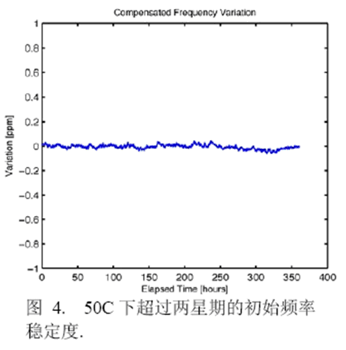 圖6顯示了在進行溫度循環(huán)試驗時兩個振蕩器的頻率穩(wěn)定度。數(shù)據(jù)在-50℃到+80℃正溫度循環(huán)和負溫度循環(huán)中的30℃情況下獲得,數(shù)據(jù)采集自600個溫度循環(huán),以3ppm為規(guī)范容許范圍則沒有頻率漂移。