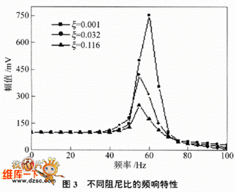 - 通過(guò)振動(dòng)實(shí)驗(yàn)得到在不同阻尼下光纖光柵加速度計(jì)的幅頻特性