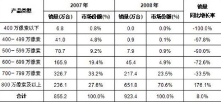 - 400萬像素以下產(chǎn)品完全退出市場,千萬像素產(chǎn)品成為市場主導