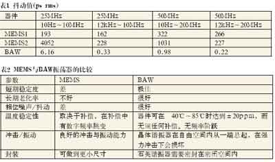 該研究采用已有測量技術(shù)對(duì)商用BAW與MEMS振蕩器的多種不同電特性進(jìn)行了比較,在此基礎(chǔ)上進(jìn)行了部分討論,并在表2中做了相應(yīng)總結(jié)。結(jié)果表明,兩種技術(shù)是不可互換的。頻率偏差、MEMS振蕩器的低Q值與數(shù)字溫度補(bǔ)償都造成了許多應(yīng)用中不可接受的頻率波動(dòng)。