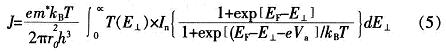 式中:e為電子電荷的大小,m*為GoAs電子的有效質(zhì)量,kB為玻爾茲曼常數(shù),T為絕對(duì)溫度,EF為費(fèi)米能級(jí),E1為入射電子垂直(縱向)能量。