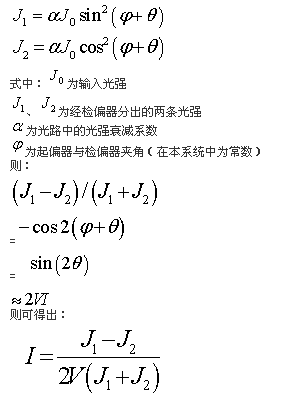 法拉第磁光效應(yīng):如果通過(guò)一次導(dǎo)線的電流為i,導(dǎo)線周圍所產(chǎn)生的磁場(chǎng)強(qiáng)度為H,當(dāng)一束線偏陣光通過(guò)該磁場(chǎng)時(shí),線偏陣光的偏振角度會(huì)發(fā)生偏振,其偏振角θ的計(jì)算公式為: