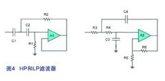 正如圖3所示,會采用一個高通濾波器來抑制能夠引致下一個增益級飽和的直流器件。這個高通濾波器的截止頻率為0.5Hz。該濾波器采用二階Sallen Key型的 Butterworth 拓撲技術(shù)來實現(xiàn)。至于第二級是一個低通濾波器,其擁有100Hz的截止頻率和100的增益,并且同樣以Sallen Key 拓撲來實現(xiàn)。諸Sallen Key 類的模擬濾波器是圍繞著有電阻器和電容器的運算放大器而建立。當(dāng)中沒有采用電感器是因為它體積過大、笨重和不夠完美。