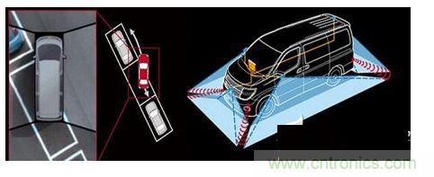 環(huán)視攝像頭,或稱為全景式影像監(jiān)控系統(tǒng),能將汽車頂部各個方向鳥視畫面拼接起來,并動態(tài)顯示在車內(nèi)的液晶屏上;此外,環(huán)視攝像頭還能識別停車通道標(biāo)識、路緣和附近車輛。一些最高級的環(huán)視影像系統(tǒng)配合聲納使用可以發(fā)出實(shí)時預(yù)警,提醒駕駛員和障礙物靠得太近。