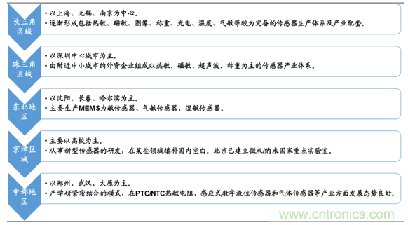 國(guó)內(nèi)傳感器企業(yè)的主要布局區(qū)域