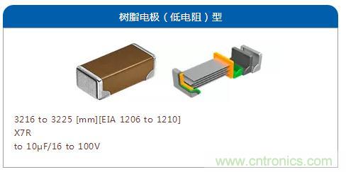 希望降低基板彎曲、掉落沖擊以及熱沖擊等機械壓力導致的風險時,推薦使用在端子電極上嵌有具備柔性的樹脂層以及金屬框架的"冗長設計類型"結構。