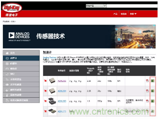 圖3:ADI加速度傳感器選擇與開(kāi)發(fā)板選擇頁(yè)面