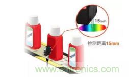 2、用于識(shí)別和比較物體表面顏色值(RGB)的顏色傳感器。這類傳感器一般采用通過(guò)RGB(紅色,綠色,和藍(lán)色)LED光源和運(yùn)算檢測(cè)物體反射光中R,G,B波長(zhǎng)比率,來(lái)判斷檢測(cè)到的顏色是否和設(shè)定的一致。類似于彩色相機(jī)。