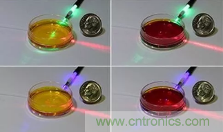 圖1:美國和澳大利亞的研究人員開發(fā)了一種非侵入性、即時測量液體pH值的方法,該方法使用了激光光源、光纖探頭以及一些基本的化學(xué)試劑。